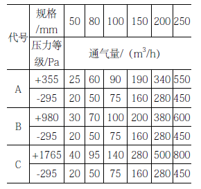 1)按照呼吸阀的通气量来选择呼吸阀的规格尺寸及数量,见表1。